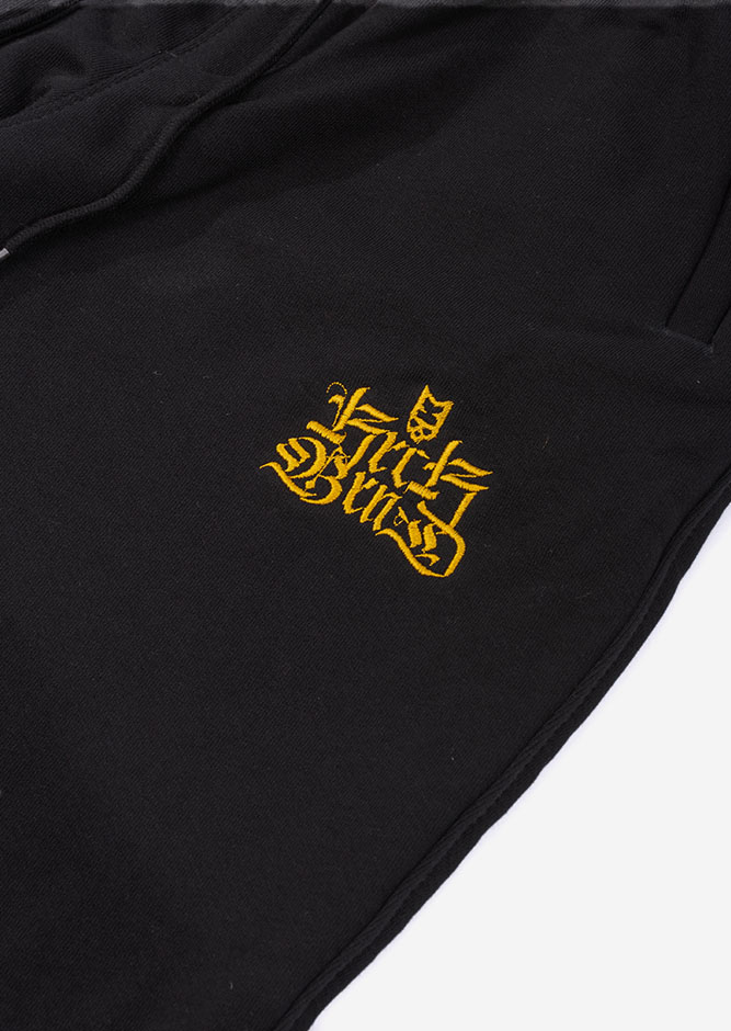 Blackletter Spring Pants fac partea din 1 generație de pantaloni din french terry de 400 g/m², dorind sa surprindem mereu comunitatea cu materiale versatile, metoda de personalizare a acestui produs consta in aplicarea broderiei cu un stil graffiti a denumirii brandului + logo-ul skull, de culoarea galbena, respectiv Krckbrnd pe alb, buzunare finisate cu fermoar in fata, 1 buzunar la spate , șiret cu cap metalic personalizat.